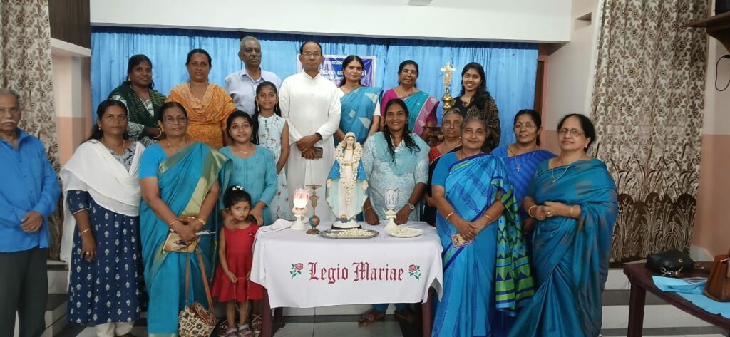 The Legion of Mary is a global Catholic lay organization, active in the Latin Archdiocese of Trivandrum and in our parish. It is dedicated to the spiritual and apostolic mission of the Church under the patronage of the Virgin Mary. Founded in 1921 by Frank Duff, it engages lay members in active apostolate works, such as visiting the sick, supporting the marginalized, and promoting Christian values through prayer and service. In Kerala, local praesidia (groups) meet weekly for prayer, planning, and reporting on apostolic activities, fostering personal holiness and evangelization. The Legion strengthens parish communities by encouraging devotion to Mary and active participation in Church life.